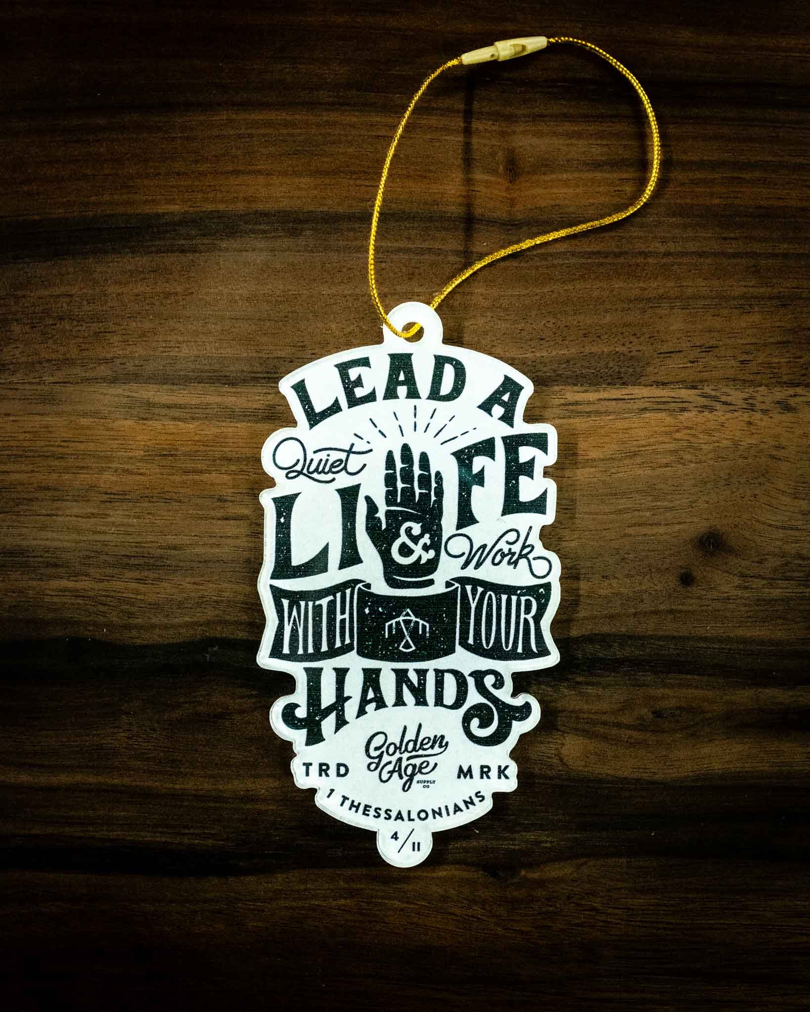 Inspired by 1 Thessalonians 4:11. This ornament is made in the USA out a durable poly material.