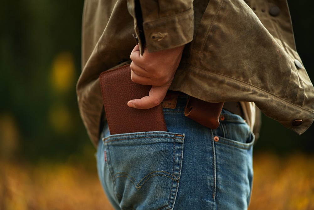 This passport wallet has room for cards, cash and of course, a passport. Fits nice in a back pocket. Will break in nicely over time. Handcrafted to last.